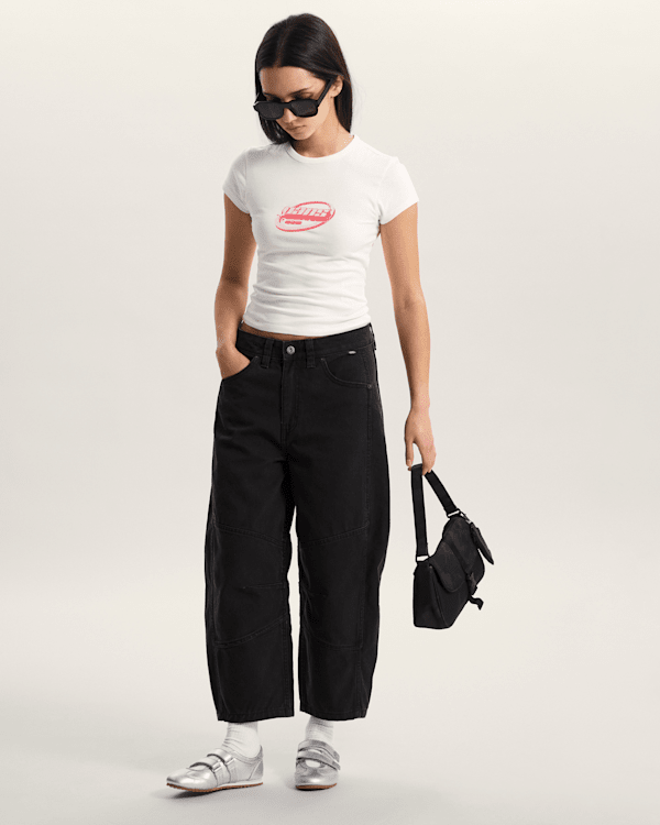Vans přináší moderní aktualizaci klasického širokého střihu. Kalhoty mají elegantní design, který je ideální pro každodenní nošení, ale zároveň dostatečně stylový pro speciální příležitosti. Vysoký pas nejenže prodlužuje nohy, ale také poskytuje pohodlí a podporu. Zakřivené nohavice dodávají kalhotám jedinečný vzhled, který se snadno kombinuje s různými typy oblečení.