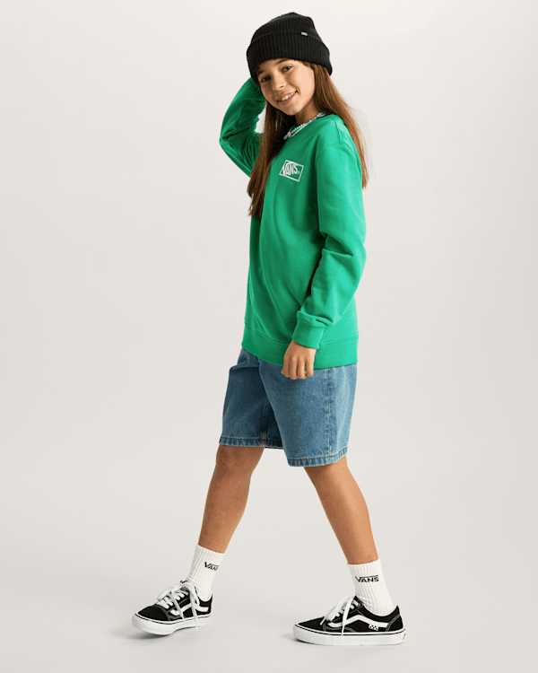 Svetr má klasický crew neck výstřih a dlouhé rukávy, což z něj činí ideální kousek pro chladnější dny. Kromě toho je na levé straně hrudi umístěno ikonické logo Vans, které dodává svetrům jedinečný a stylový vzhled. Kids By Blocked Crew je k dispozici v atraktivní zelené barvě, která osloví mladé zákazníky a snadno se kombinuje s různými outfity.