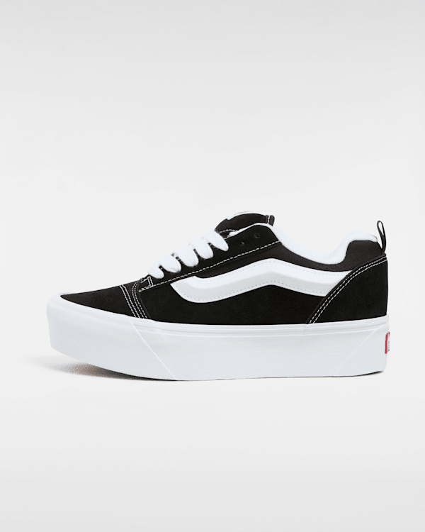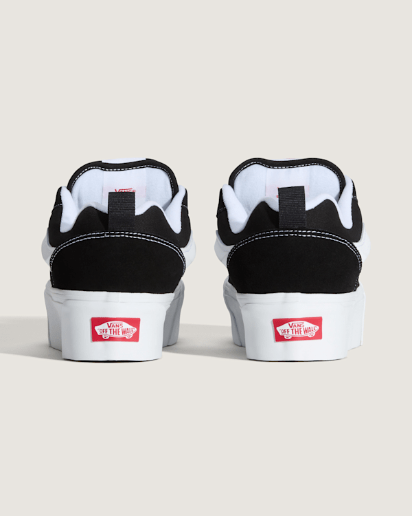 Knu Stack Shoes se vyznačují chunky platformou, která dodává botám na výšce a stylu. Přední část boty je vybavena výrazným polstrovaným jazykem, který zajišťuje pohodlné nošení po celý den. 3D tvarovaný Sidestripe, typický pro značku Vans, dodává botám jedinečný vzhled a zároveň zajišťuje stabilitu a oporu.