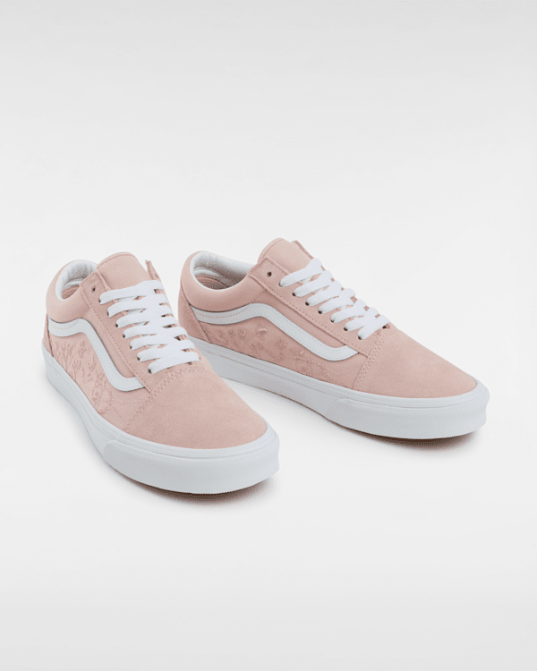 Old Skool Shoes v růžové barvě kombinují kvalitní materiály s jedinečným designem. Svršek je vyroben z odolného textilu a syntetické kůže, což zajišťuje dlouhou životnost a pohodlí. Charakteristická boční čára Vans, která byla poprvé představena na těchto teniskách, dodává modelu osobitý vzhled. Díky nízkému střihu jsou tenisky snadno kombinovatelné s různými styly oblečení.