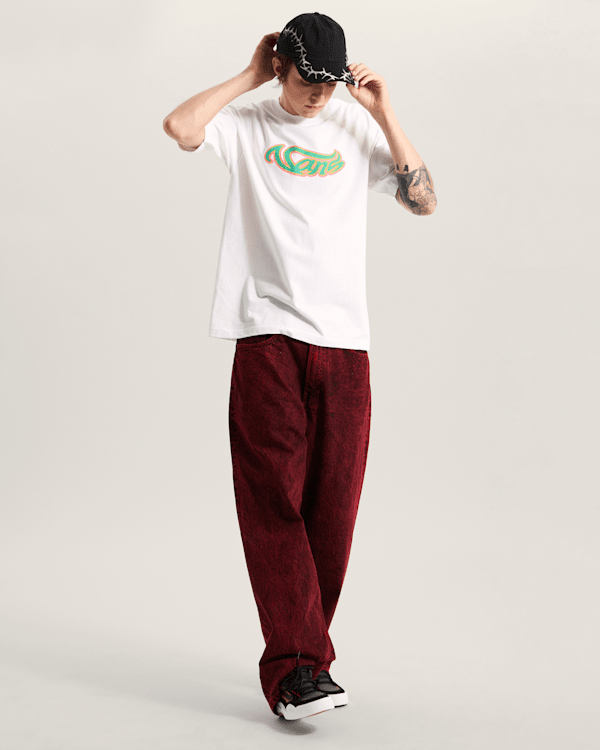 Wavy Script T-Shirt je pohodlný a lehký triko s boldovým vlnitým logem, které připomíná roztomilou spirálovou čárku. Ideální pro školní dny, skateboardové přestávky a vše mezi nimi.